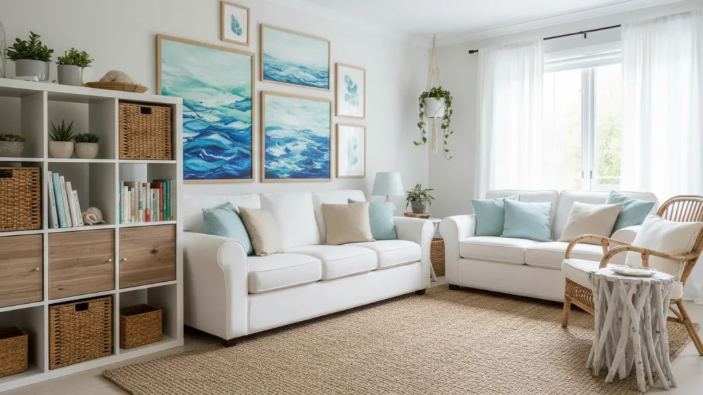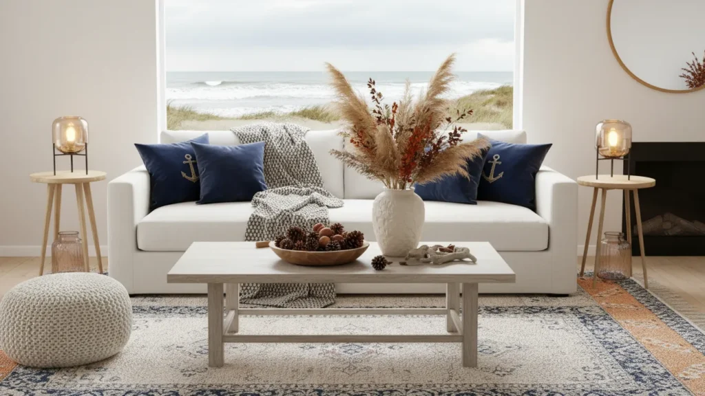 Here’s where you can really have fun. Coastal living room accessories are those small touches that pull everything together and make the space feel personal.