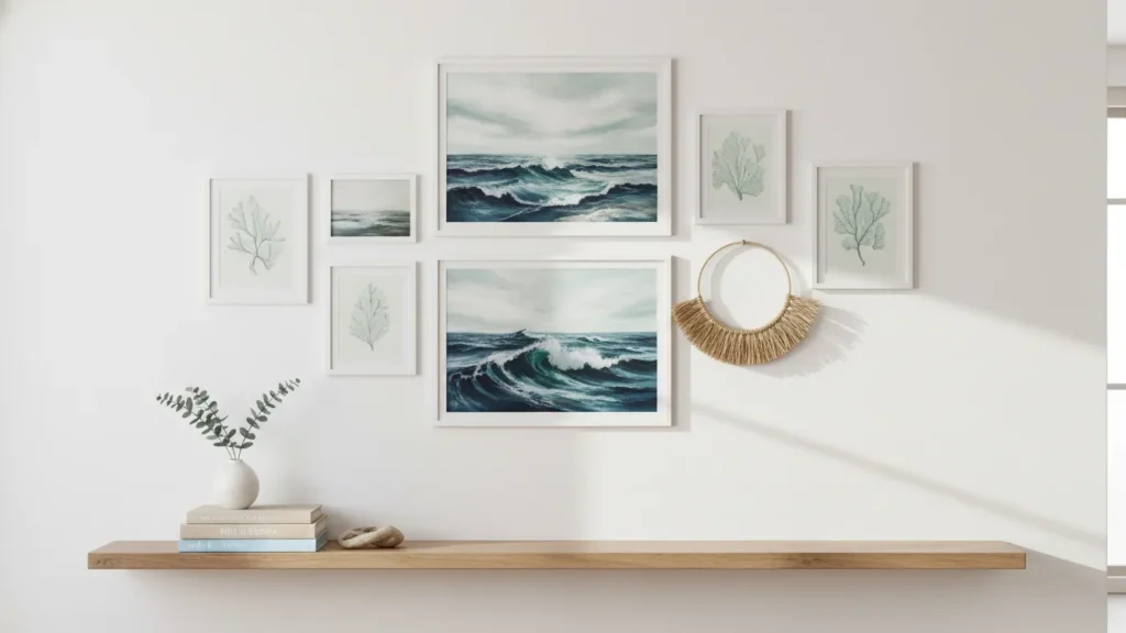 Coastal wall decor sets the tone for your entire room. The key is choosing pieces that reference the beach without being too literal or kitschy.