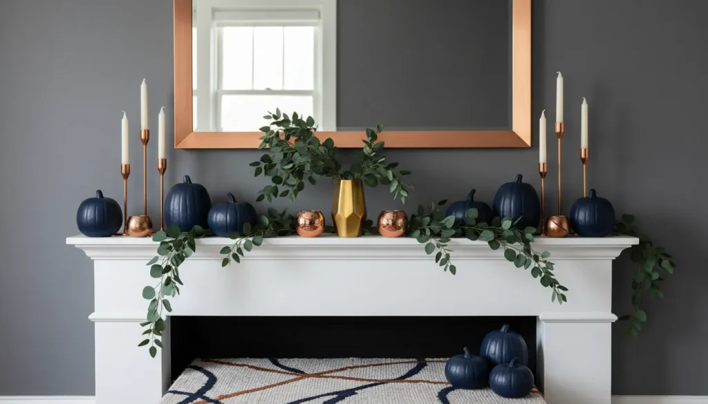 Blue pumpkins paired with copper accents create a stunning modern look. Green gourds with gold candles feel fresh and sophisticated. Don’t be afraid to experiment with non-traditional fall colors that complement your existing decor.
