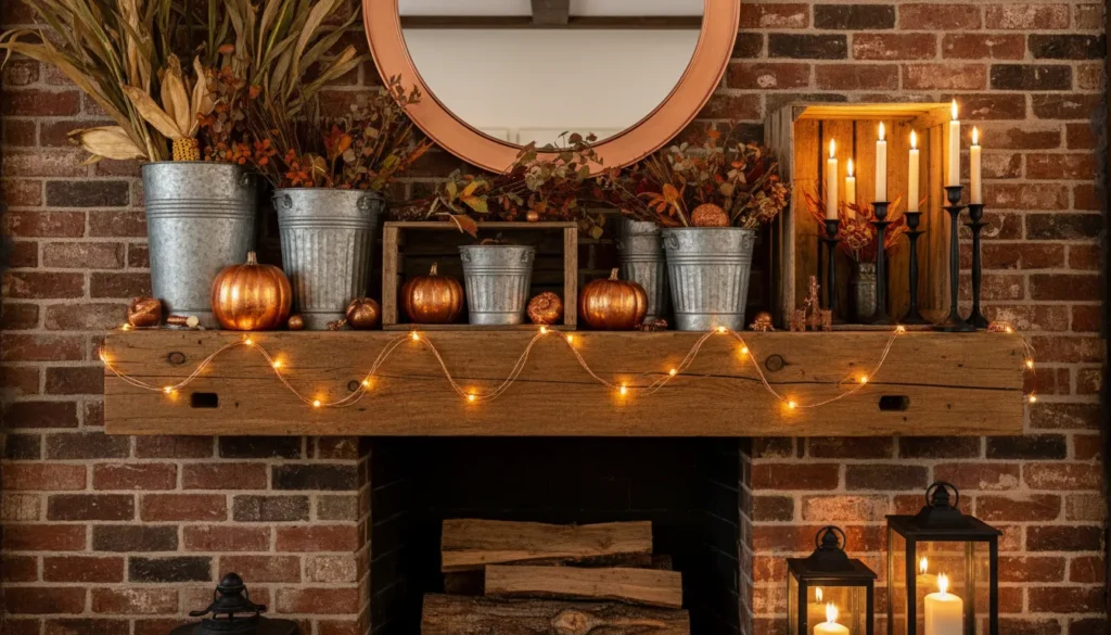 This creates dimension that makes your fall mantel decor feel intentional rather than just randomly placed. Think of it like creating a stage where each element has its role to play.
