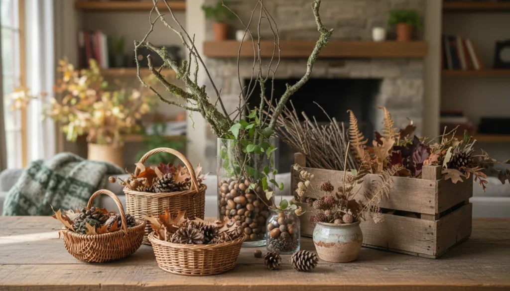 Foraging natural materials isn’t just budget-friendly – it connects you with the season and reduces waste. Plus, items from your local area create authentic regional fall character.