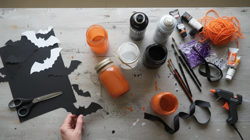 Making your own decorations adds personal touches while saving money. Paper bats cut from black cardstock and arranged in a swarm pattern look incredibly effective. Mason jars painted black or orange become instant vases or candle holders. Printed Halloween phrases in nice frames cost only the price of printing.