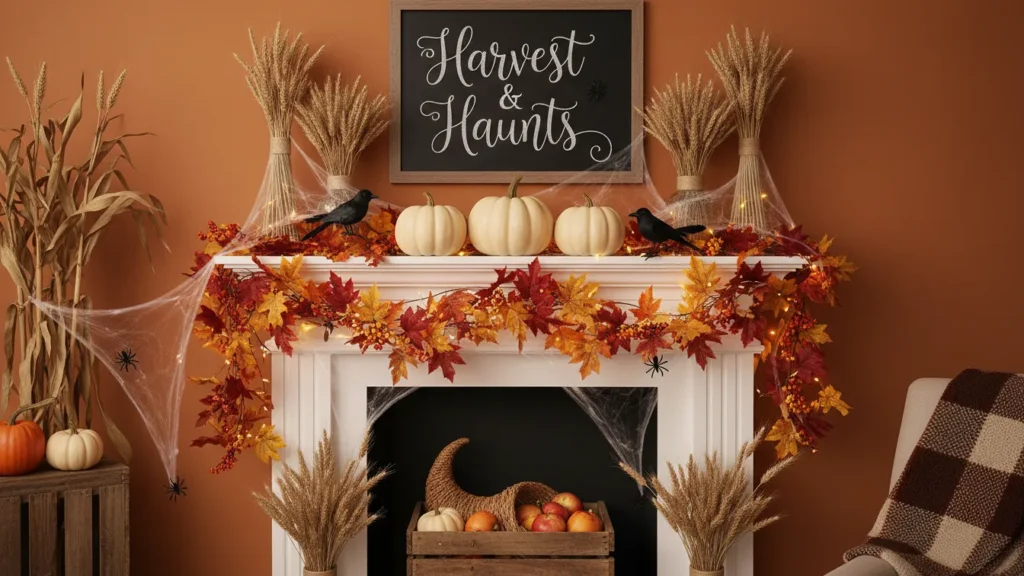 After Halloween, you don’t have to strip everything away immediately. Many Halloween mantel decorations can transition easily to Thanksgiving decor. Keep the pumpkins, autumn leaves, and neutral elements. Remove the specifically Halloween items like skulls, spiders, and ghosts.