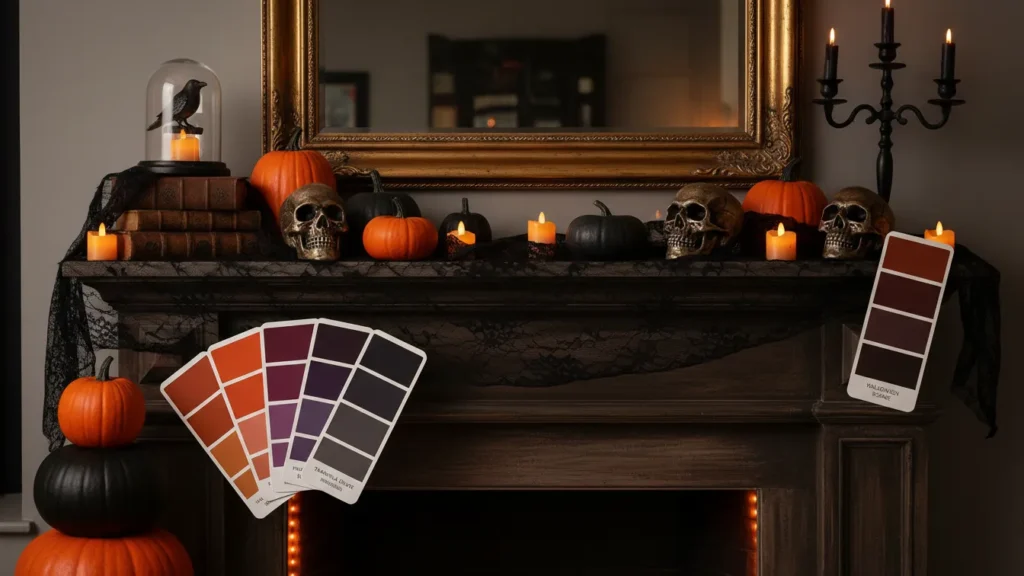 Start with 3-4 colors maximum. Traditional Halloween colors include orange, black, and purple, but you can get creative. Metallic gold with black looks incredibly elegant. White, cream, and natural wood tones create a sophisticated neutral palette. Deep burgundy, orange, and bronze feel rich and autumnal.