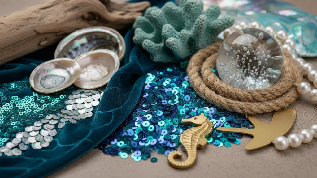 Sea-inspired motifs are everywhere in this style. Scales, waves, shells, starfish, and of course, mermaids themselves. But you might be wondering how to incorporate these without going overboard (pun intended).