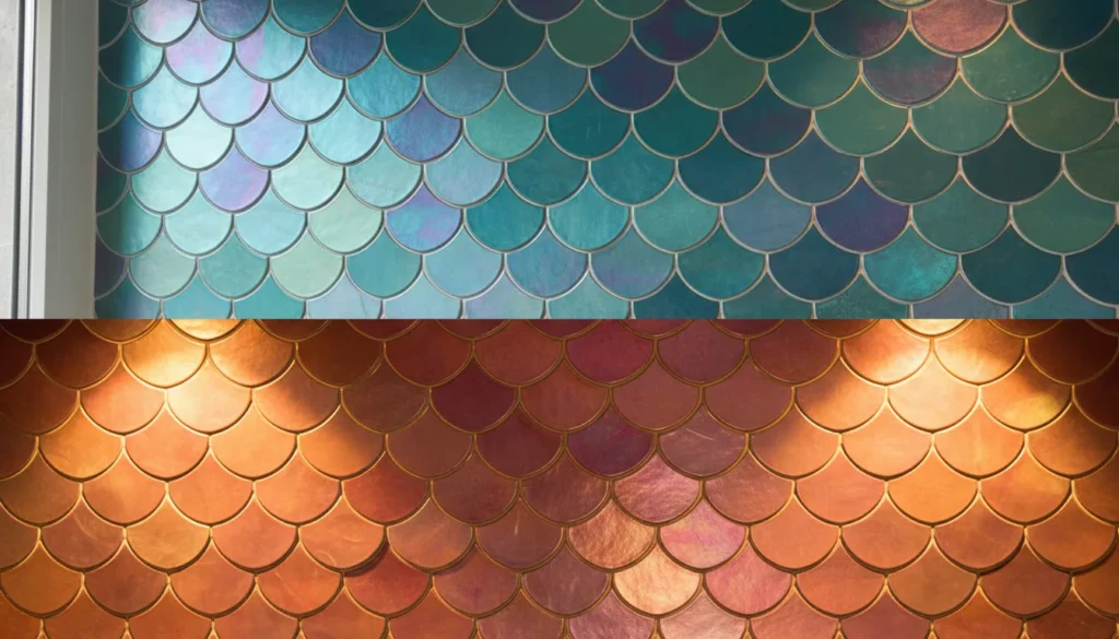 Iridescent or holographic finishes are where mermaid tiles really shine – literally. These special glazes contain materials that split light into rainbow colors, creating that magical underwater sparkle. They cost more but deliver maximum impact.