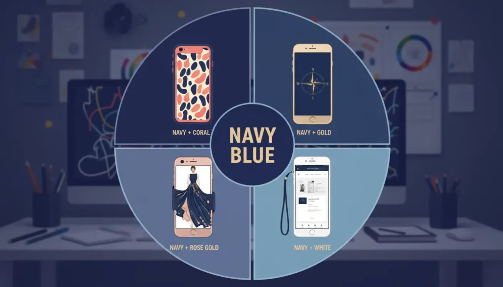 Navy and rose gold or navy and coral create softer, more feminine looks. These combinations are trending heavily in 2026, especially among design-conscious users.