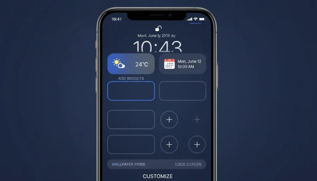 iOS lock screen customization has expanded significantly. You can now add widgets directly to your lock screen. Choose widgets with navy backgrounds or transparent designs to maintain your aesthetic.