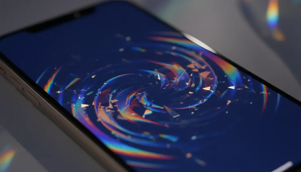 These wallpapers often feature rainbow-like sheens or light refractions against navy backgrounds. They’re particularly popular among younger iPhone users who want something eye-catching but still sophisticated.