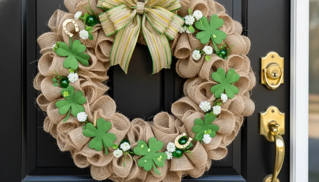 Wreaths are outdoor decoration staples for good reason. A St. Patricks Day wreath made from green burlap, artificial shamrocks, and a festive ribbon instantly announces your Irish spirit. Hang it on your front door at eye level. I’ve seen gorgeous versions incorporating white flowers, gold ribbons, or even miniature leprechaun hats.