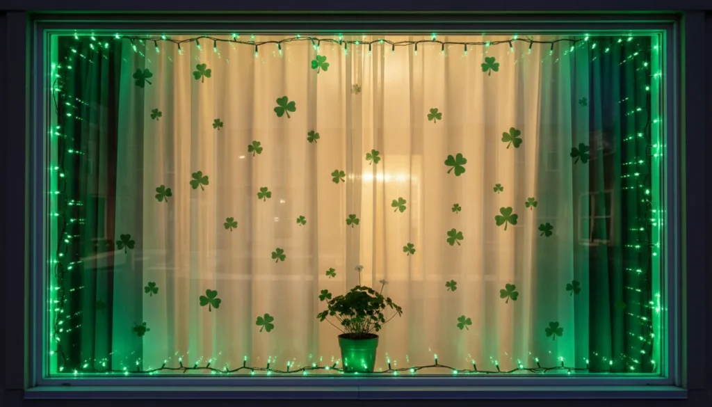 Window clings work beautifully for renters or anyone avoiding permanent changes. Shamrock, rainbow, and leprechaun designs stick to glass without residue. Position them at varying heights for visual interest. From inside, they create cheerful silhouettes; from outside, they signal celebration.