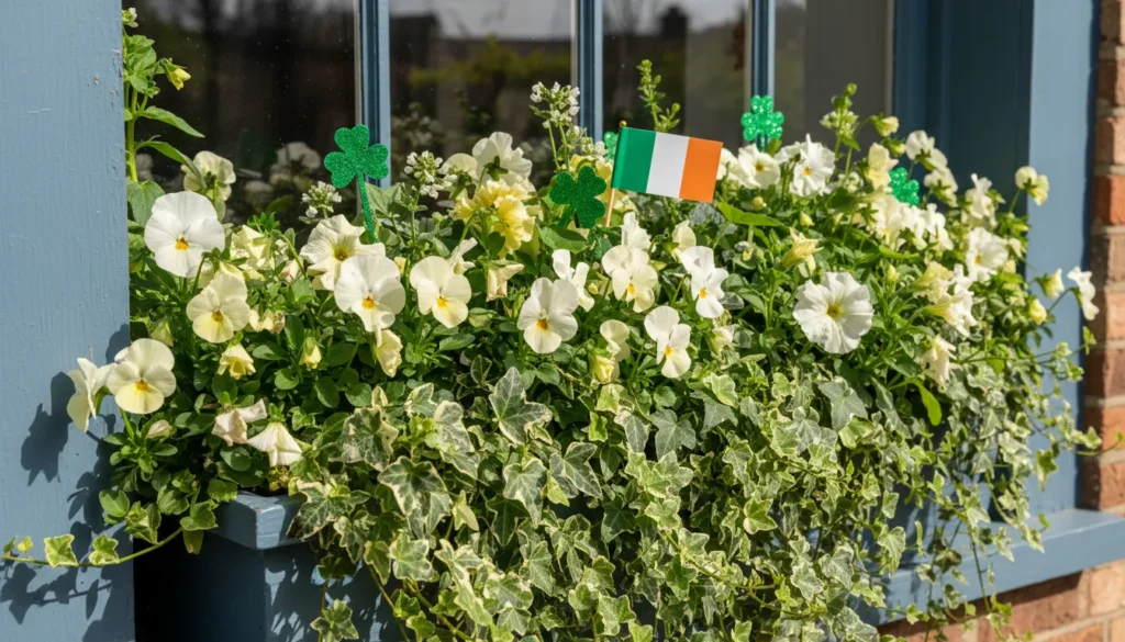 Window boxes deserve seasonal updates. Fill them with green and white flowers—think pansies, petunias, or ornamental cabbage. Add shamrock picks or small Irish flags. Include trailing ivy that spills over the edges for fullness.