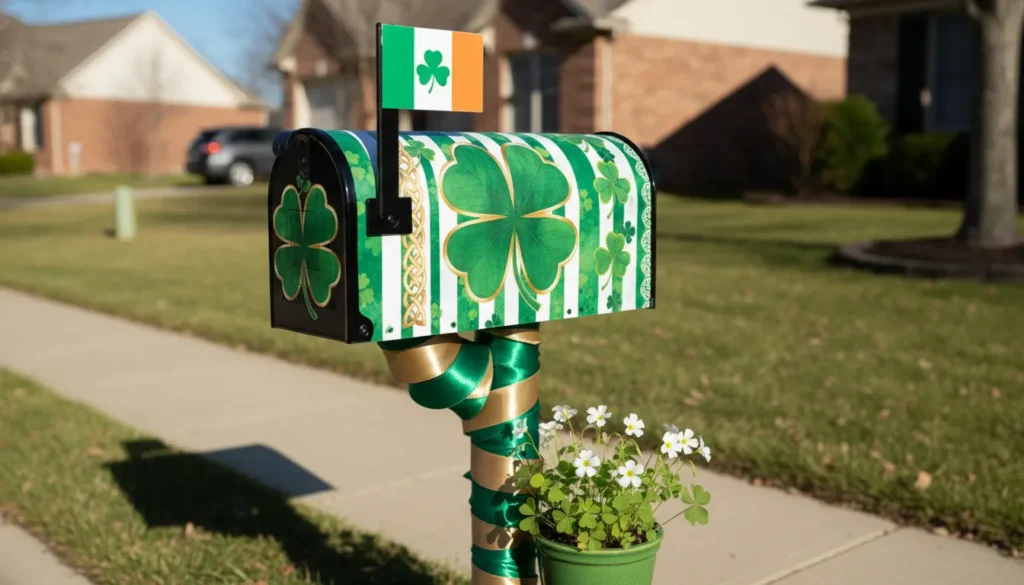 Mailbox decorations make a statement at your property’s edge. Wrap the mailbox post with green and gold ribbon. Attach a St. Patricks Day mailbox cover featuring festive designs. Place a small potted shamrock plant at the mailbox’s base. Add a flag topper if your mailbox style allows.