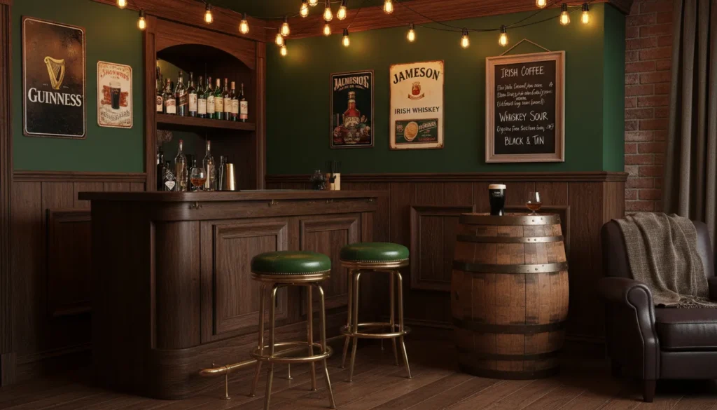 Celtic knots and Irish harps add sophistication to your setup. These symbols connect directly to Ireland’s ancient heritage and work particularly well if you’re going for an elegant rather than kitschy vibe.