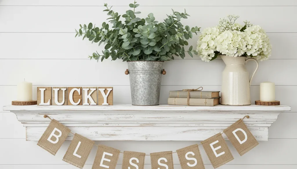 Wall decorations set the tone immediately. Consider hanging a St. Patricks Day banner above your fireplace or main seating area. Shamrock garlands create flowing lines that draw the eye around the room. I particularly love using removable wall decals because they don’t damage paint and come off easily after the holiday.