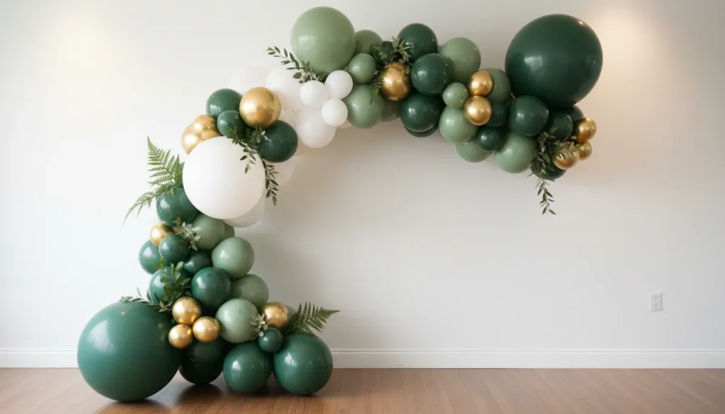 Balloon installations beyond basic bunches make bold statements. Balloon garlands, organic balloon arrangements, and sculptural balloon art in green, gold, and white tones create dramatic impact. These work especially well for parties and events.