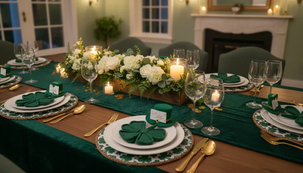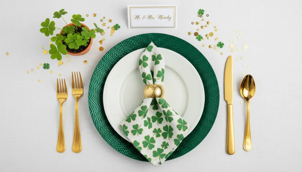 Table settings make or break the dining experience. Start with a green or white tablecloth as your base. Layer with shamrock-patterned placemats or chargers. Use green napkins folded into creative shapes—shamrock folds are easier than you’d think and impress guests.