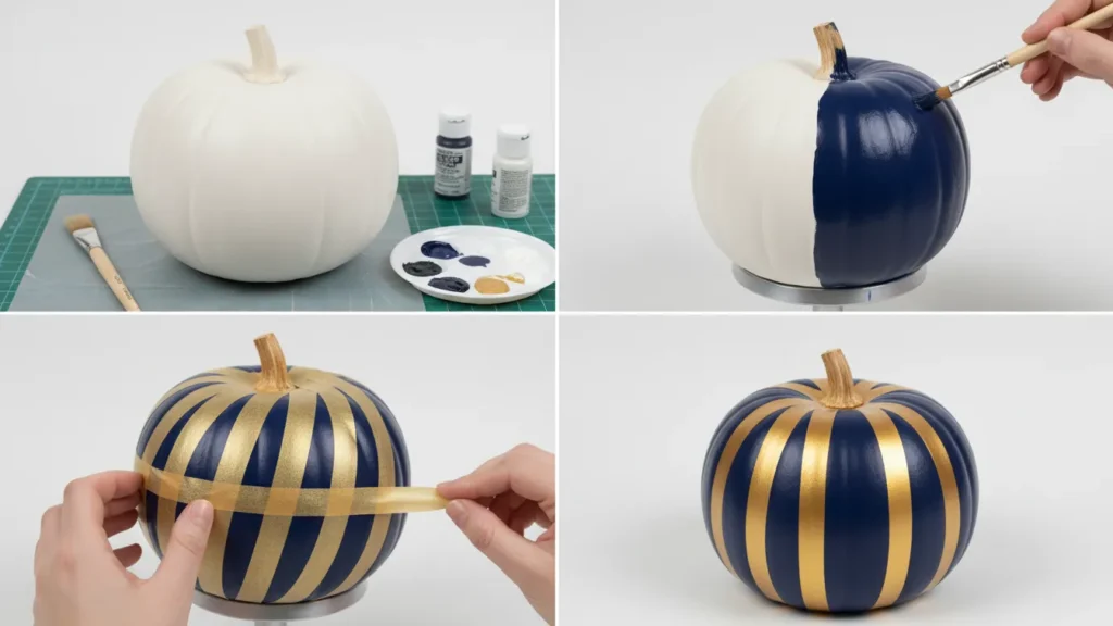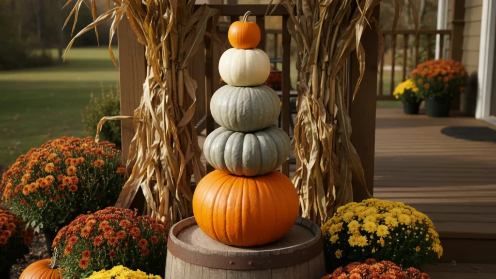 16. Single Statement Pumpkin: Sometimes less is more. One large, unique pumpkin (like a white Cinderella variety or a blue-gray jarrahdale) on a simple stand can be stunning.