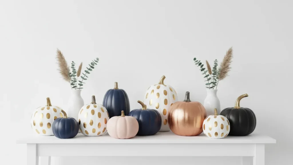 Blush and Gold: For something softer and more romantic, try dusty pink, rose gold, and champagne tones mixed with traditional fall elements.