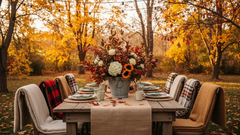 Tablecloths and Runners: A quality table runner in a fall color or pattern instantly elevates your setup. I prefer linen or burlap for that rustic, textured look. If you’re going for elegance, a full tablecloth in cream or burgundy works wonders.