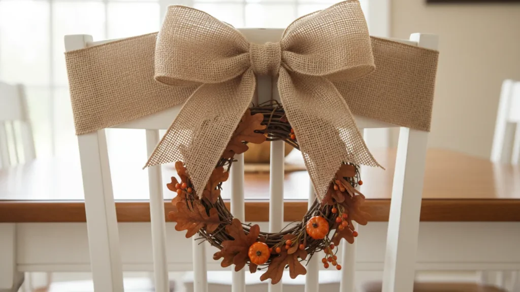 Tie simple burlap bows to chair backs, or create small wreaths to hang. For a more casual look, drape blankets over chairs for added warmth and texture.