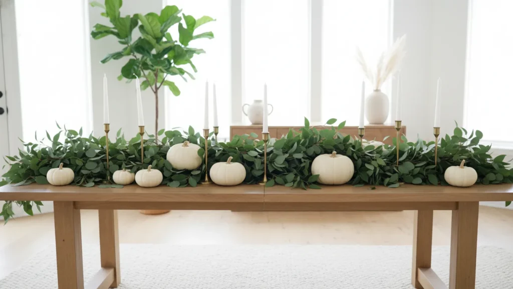 A garland hung along a wall or draped above a doorway adds festivity without taking up valuable square footage. Window sills are also prime real estate—line them with small pumpkins or candles.